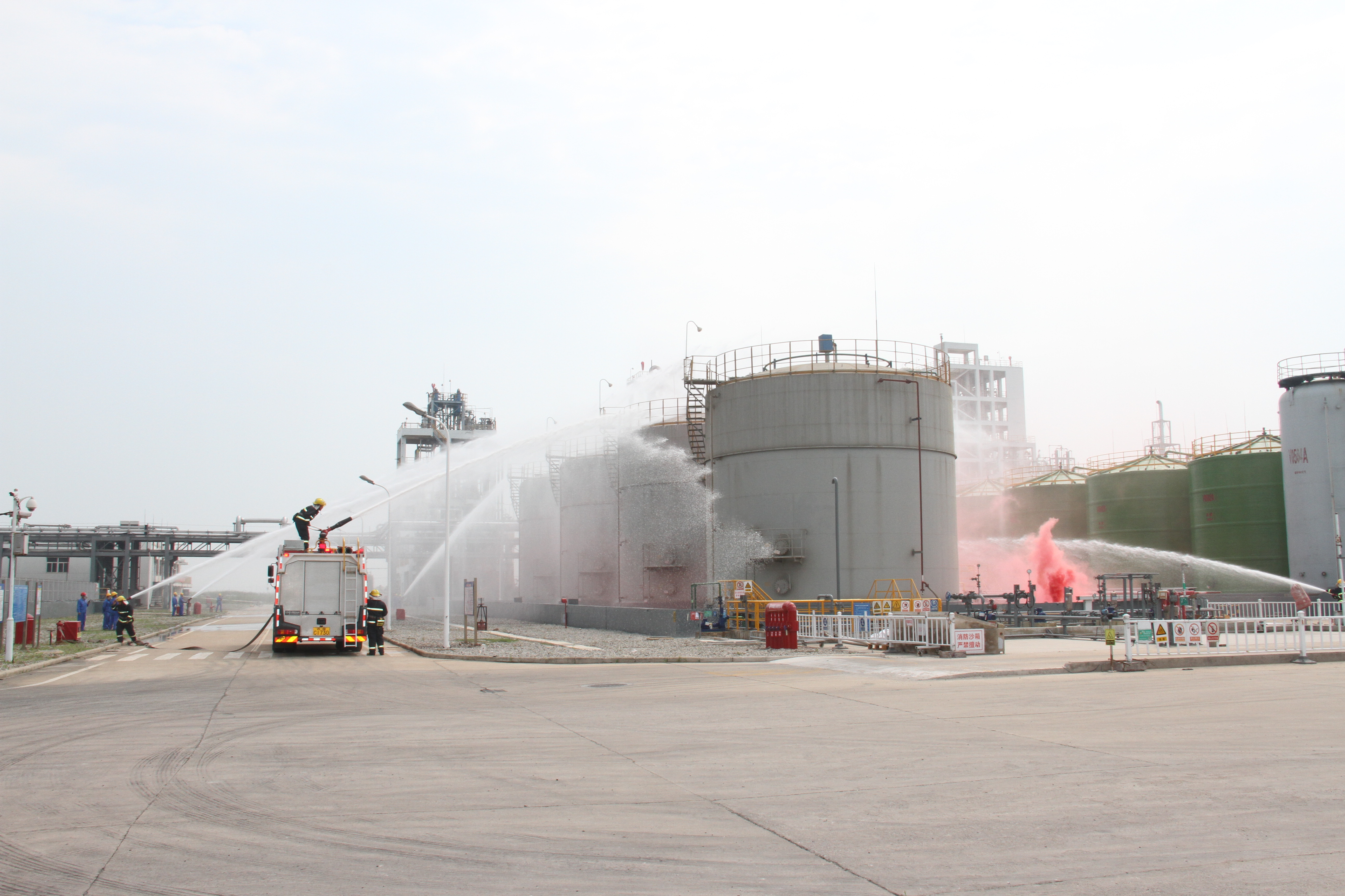 為進(jìn)一步完善事故應(yīng)急救援體系,強(qiáng)化突發(fā)事件應(yīng)急處置能力,6月22日上午,市國資委和市工投集團(tuán)在利海化工公司聯(lián)合舉行危險(xiǎn)化學(xué)品罐區(qū)泄漏事故應(yīng)急演練活動(dòng)。市國資委黨委委員王懷東及市屬各大國企集團(tuán)公司、連云區(qū)應(yīng)急管理局、連云開發(fā)區(qū)管委會(huì)等相關(guān)領(lǐng)導(dǎo)蒞臨指導(dǎo)。集團(tuán)公司副總經(jīng)理朱天松,各權(quán)屬單位負(fù)責(zé)人、安全管理人員到場觀摩。