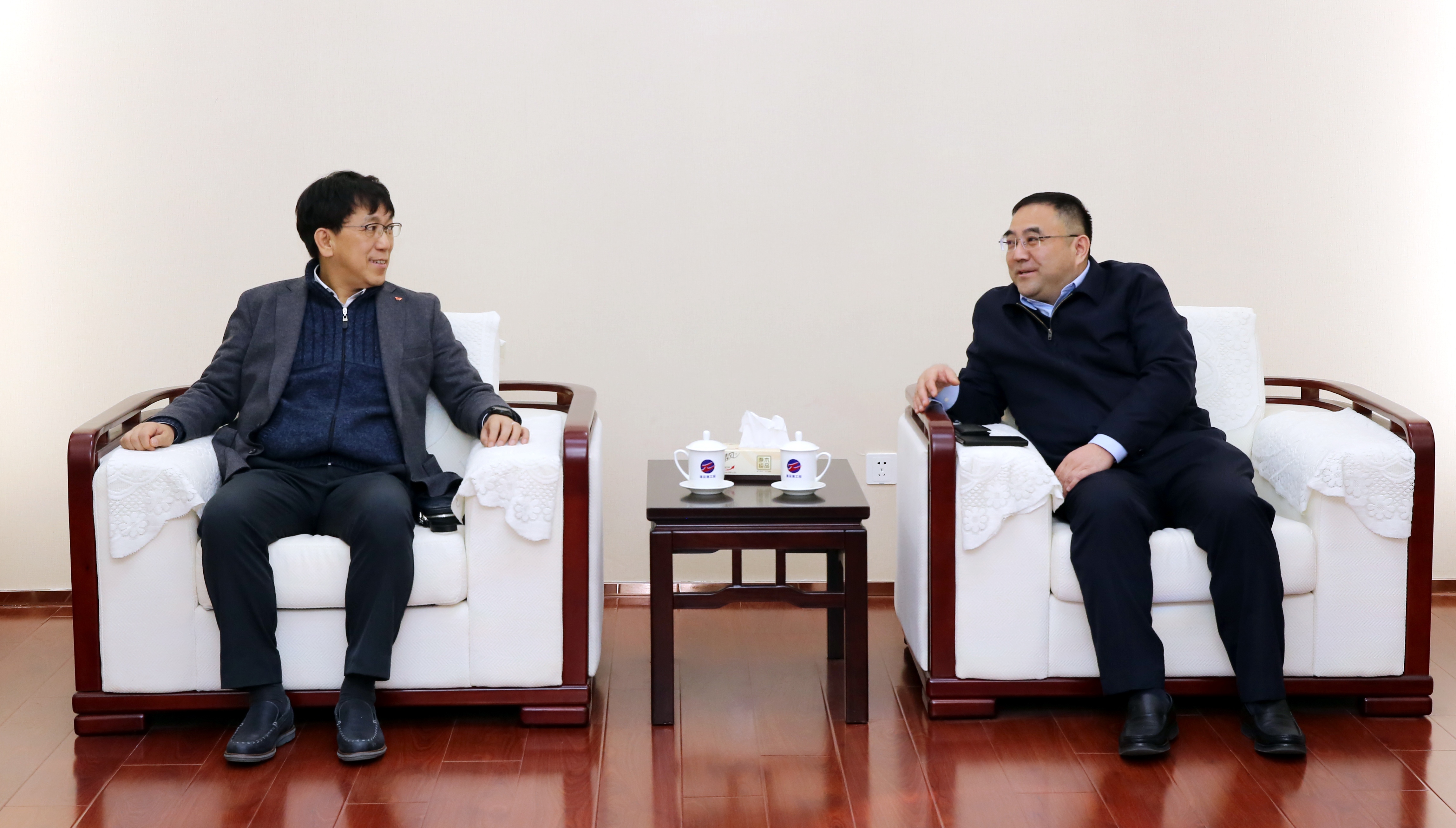 2月25日上午,集團(tuán)公司董事長(zhǎng)、黨委書(shū)記楊龍?jiān)诳偛繒?huì)見(jiàn)了韓國(guó)SKC集團(tuán)吳濬祿代表一行。雙方就在東海縣開(kāi)發(fā)區(qū)合作投資項(xiàng)目進(jìn)行了座談交流。集團(tuán)公司常務(wù)副總經(jīng)理?xiàng)顕?guó)新以及資產(chǎn)管理公司相關(guān)負(fù)責(zé)人參加交流活動(dòng)。