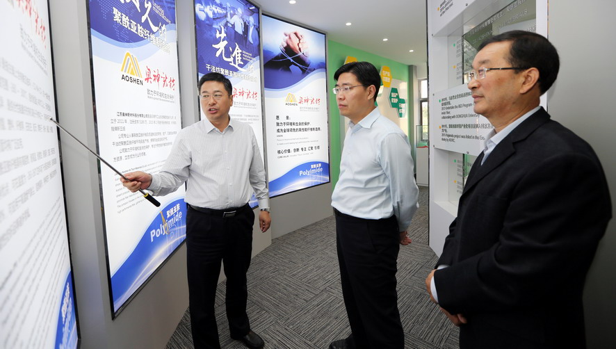 曹衛東一行先后參觀了奧神新材料公司展廳和聚酰亞胺高性能纖維生產車間,并聽取了相關情況匯報,對奧神新材料公司的研發能力和高性能纖維產業發展成效給予了充分肯定。曹衛東指出,奧神新材料公司成立五年來,以創新驅動轉型為動力,致力推進企業技術創新、產品創新和市場創新,取得了令人矚目的成績。“十三五”期間,作為高性能纖維自主研發制造企業、聚酰亞胺纖維干法紡絲生產核心技術的掌握者,奧神新材料公司要進一步突出高、新、優特色,切實踐行創新發展理念,加強自主知識產權保護,在聚酰亞胺纖維研發及生產方面著力突破新技術、提升創新力,推動產業高端化、規模化、集聚化發展,打造國內一流的新材料產業基地,為推動連云港市纖維新材料產業發展做出新的貢獻。