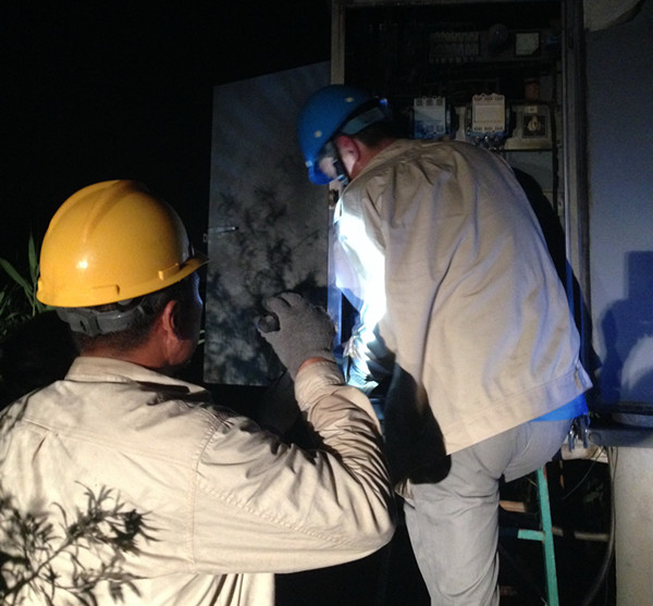 8月4日晚,因氣溫高天氣悶熱用電負荷大,青口供電所從19點至21點報修電話是接連不斷:二十圩變壓器起火停電,十七圩配電箱起火停電,十四圩配電箱底座起火停電,勝利圩配電箱跳閘停電,由于多處停電,并且故障難度大,為了能盡快的恢復供電,副所長李衛田親自帶領三班人員進行搶修,家居縣城的王建,下班在家的霍如軍和楊同善,他們接到搶修任務后立即趕到搶修現場,他們克服了天氣炎熱,蚊蟲叮咬,天黑工作難度大等困難,奮戰五個小時,四處停電地方全部搶修完畢,恢復供電。(宋中文)