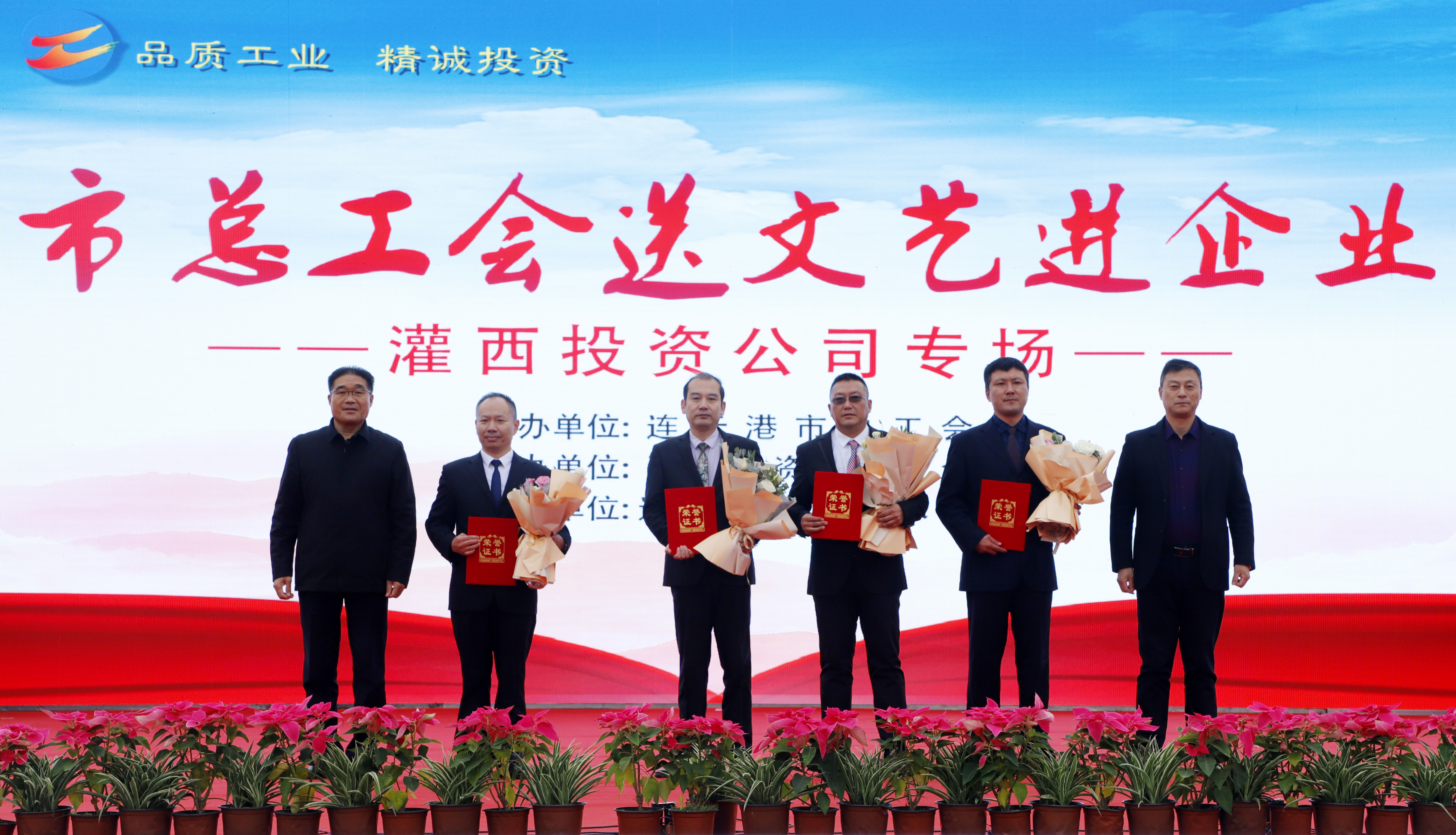 11月25日,由連云港市總工會主辦、連云港市工投集團灌西投資公司協辦、連云港市職工藝術團參演的“市總工會送文藝進企業”演出活動在灌西中二圩職工廣場舉行。市總工會黨組書記、副主席丁維杰,集團紀委書記汪群、工會主席劉承志,投資公司黨委書記、董事長、總經理李國文及公司領導班子成員與灌西700多名干部職工群眾共同享受了此次“文化”盛宴。