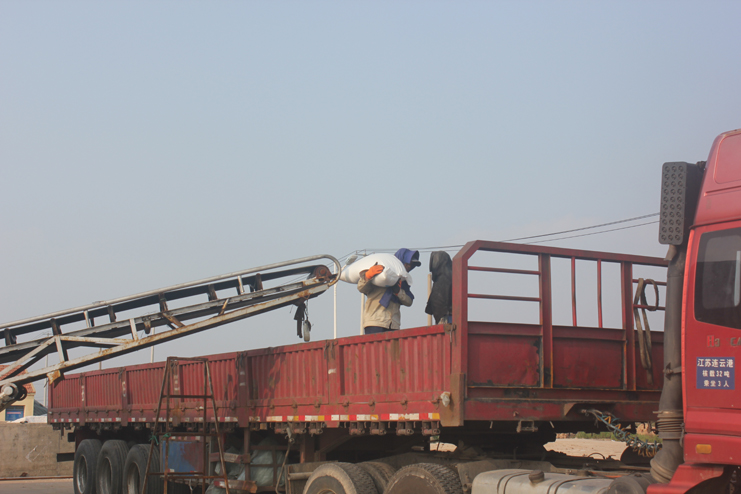 最后我們來到了筑包基地,流水線上工人分工明確,有的負責裝袋,有的負責封口,有的負責將其放上傳送帶。傳送帶的另一端,兩名工人站在貨車上,輪流將傳送上來的鹽包整齊的擺放在車廂里。