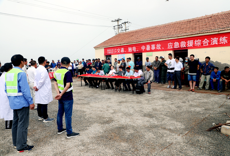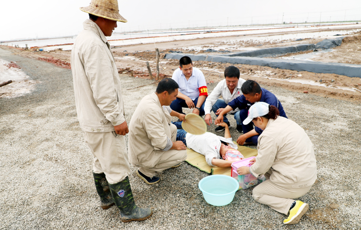 此次演練過程中,安全監管部李長軍主持了這次演練活動,埒南制鹽分公司職工及管理人員參與其中,演練模擬現場有三個:1、職工在灘頭塑池堰上突然中暑(重度)。2、職工在廩基小鹽化鹵調鹵中接觸老化線路接頭時不慎觸電(傷害較重)。3、職工在上班途中三輛電瓶車相撞(跌傷較重)。在救援過程中,大家各司其職,齊心協力,配合默契,有條不紊成功完成了此次演練活動。通過這次應急演練,進一步提高了公司員工應對緊急事件的自我保護和防衛能力,保證員工在發生突發事件時,能熟練應對、有序救援,最大限度地減少事故帶來的損害,切實保護員工的安全。