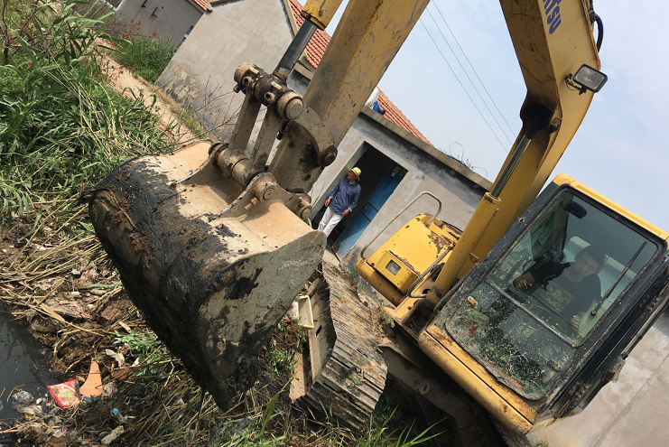 "各項防汛工作中,當數中二圩排水道堵塞問題最為突出,由于之前的燕尾港鎮拆遷,大量拆遷戶涌入灌西鹽場中二圩地區生活,違建現象嚴重,各種建筑垃圾和白色垃圾隨處堆放,排水系統深受其害。為方便職工群眾生活起居,灌西公司對中二圩地區排水道進行疏通清理,以便安度汛期。”清理現場,," 防汛辦公室主任楊善兵說道,只見大小挖機全力施工,對于大挖機不好進入的居民區內部小溝小道則由小挖機專門清理,對于復雜地形機械難以進入的地方只能人工清理,務求做到全面徹底,不留死角。