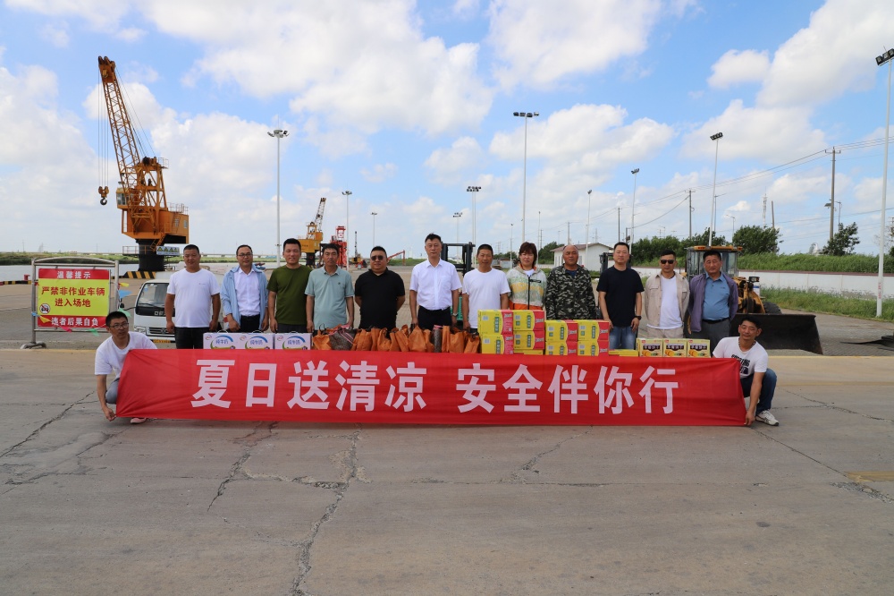 在宵洋物流碼頭,公司總經理吳衛平帶領的慰問組特意帶來了“清涼禮包”。在觀看塔吊安裝現場作業的過程中,他眉頭微蹙,仔細觀察著每一個環節。隨后,他嚴肅地要求道:“要進一步加強現場的安全管理,把防暑降溫措施切實落到實處,不能有絲毫松懈,務必確保一線職工能度過一個安全、清涼的夏季?!钡跹b梁師傅接過物資時,安全帽下的臉頰掛滿汗珠,卻笑得格外燦爛:“工會想得比家里人還周到!”