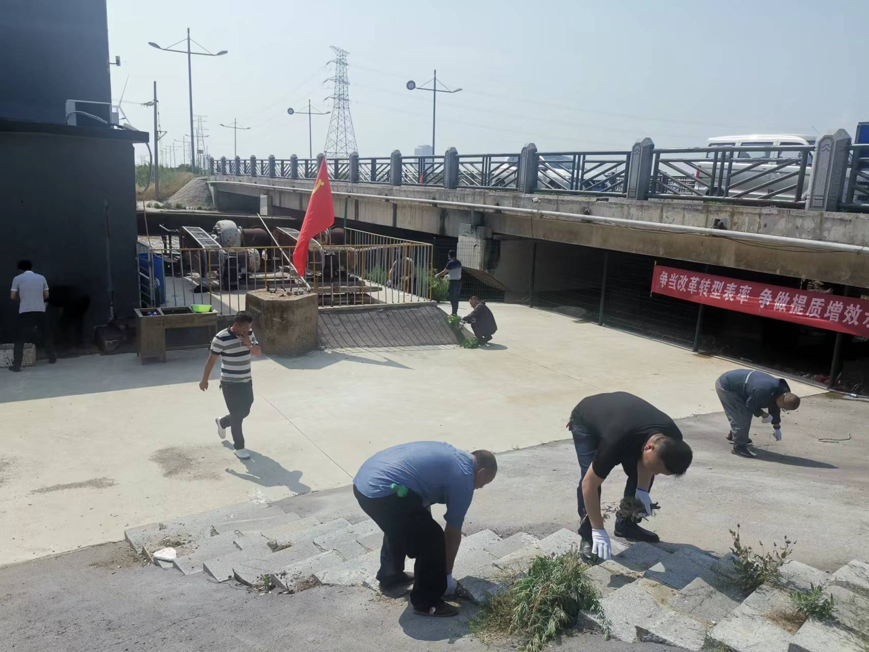 以“紅心永向黨,奮進(jìn)正當(dāng)時”為主題開展一次黨員”集中活動日”活動。6月29日上午,資源管理中心黨支部組織全體黨員和積極分子到六圩閘清理閘站室內(nèi)、外衛(wèi)生。經(jīng)過大家的共同努力,閘站里外的雜草、垃圾等全部清除干凈,整個閘站煥然一新。