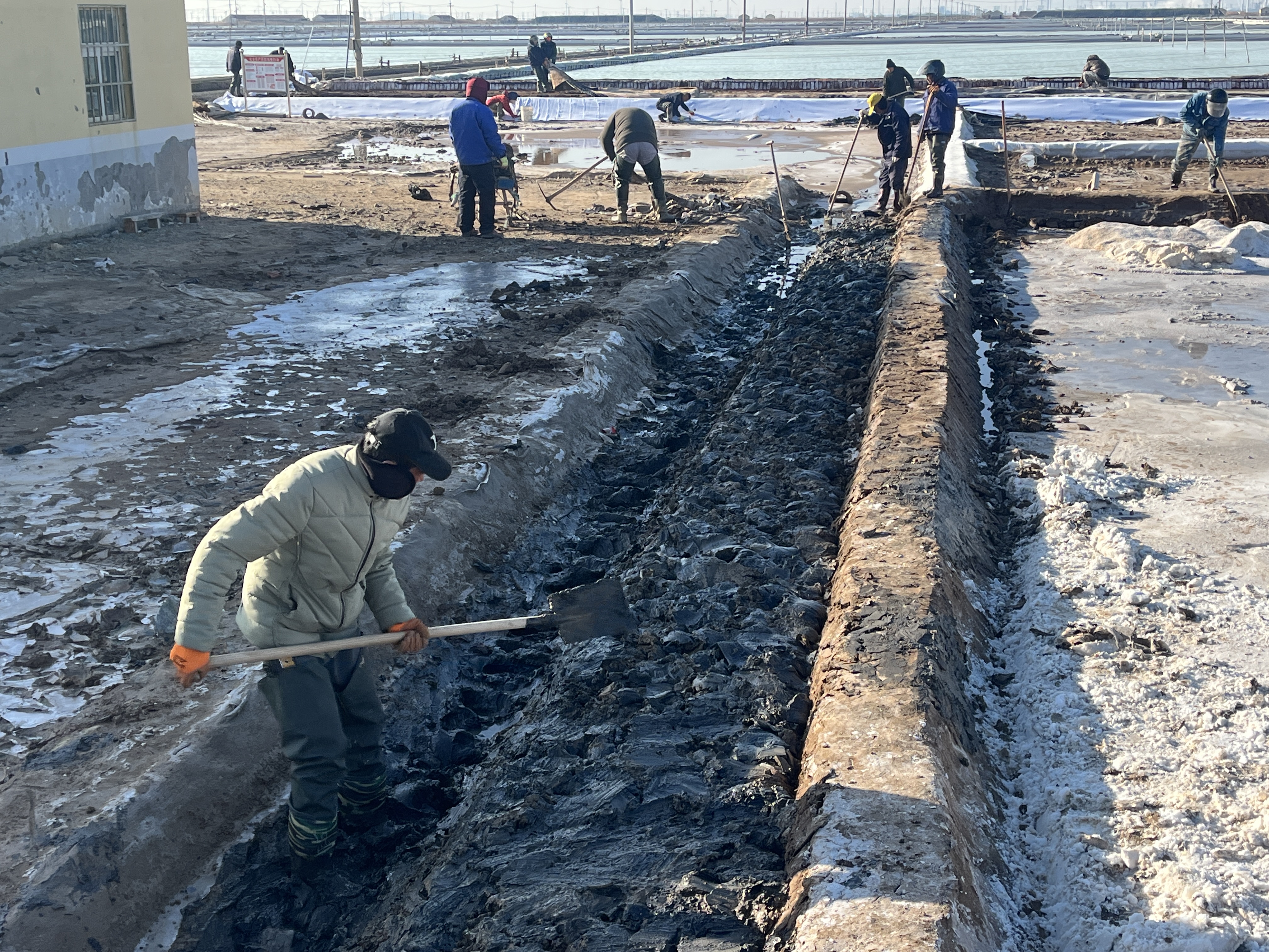 冬季是我們日曬制鹽收儲鹵水、扒土塘、整理灘場文明的最佳時期,也是為2024年工作起好頭,邁好步的關鍵時期,作為重擔我先挑,沖鋒我在前,充分調動一切積極因素,咬定目標,盡最大努力為班組創造良好的工作條件,發揮每一個班組的最大潛能,確保越冬鹵水除硫率達到95%以上;鹵水接受率100%;長鹽4萬噸;氯化鈉含純96.2%以上;單耗控制在4.2立方/噸以內;硫酸根含量控制在0.35%以下,抓好冬季風性咬制鹵水;安全生產無事故。對任務的完成情況做到每周有安排,每周有總結,確保各項工作按部、有序、穩定向前推進。成立“指揮部”掛圖作戰,打好冬準戰役:各班組按照標準化、規范化建設池埝,精心修復結晶池堵頭埝截,修整池埝150余條,1.28萬余米;
