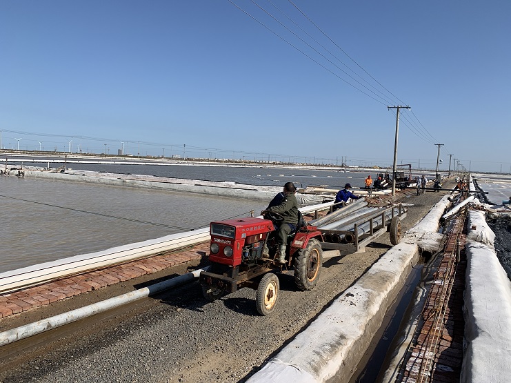 4號扒鹽機組9月12日開機扒鹽以來,歷時46天,共扒41塊鹽池、2460公畝、扒鹽大約2萬噸。今年秋扒面對雨水較多限電、質量等多重困難,公司員工同心協力,出謀劃策打破以往的從三排到頭排的扒鹽順序,采取倒扒次序;在扒鹽過程中,進行安全、鹽色、質量全面跟蹤督查提高扒鹽質量。