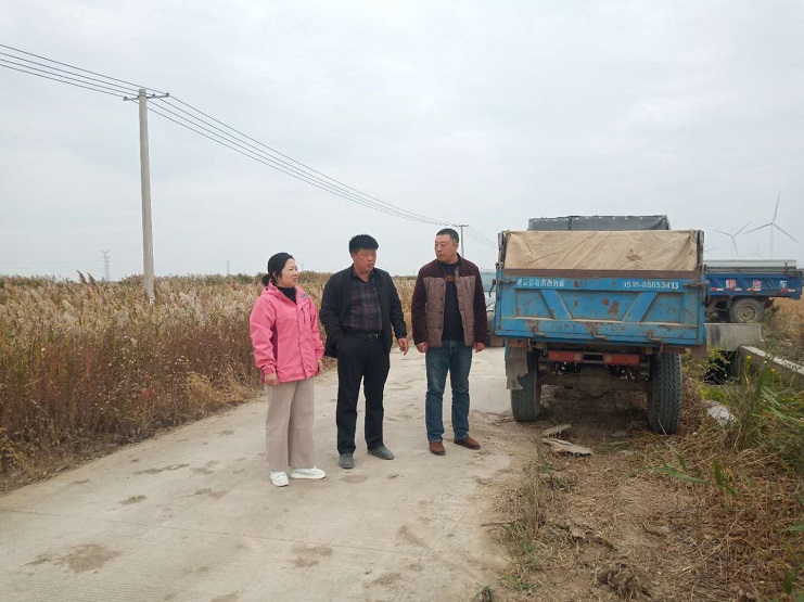 在明威公司外包種植戶秋收現(xiàn)場,趙莉莉?qū)嵉夭榭?/span>秋收進度,了解各種植戶秋收作業(yè)情況。認(rèn)真詢問糧食產(chǎn)量情況,并與種植戶交談,仔細(xì)詢問秋收中遇到的困難和問題。