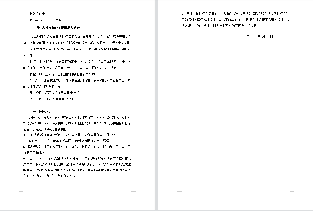 連云港市工投集團(tuán)日曬制鹽有限公司聚乙烯繩招標(biāo)公告(二次)