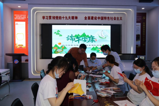 | 金融板塊端午節系列活動 五月五,過端午,劃龍舟,憶先祖!為弘揚中華民族優秀傳統文化,活躍企業文化,增強員工愛國主義教育,值此端午節來臨之際,5月30日,資產公司黨支部、工會聯合開展“粽葉荷香迎端午,劃舟奮進憶屈原”端午節系列活動。 此次活動以端午節為契機,以“巧手繡荷包”、“旱地賽龍舟”、“觀影憶屈原”、“吃粽子比賽”等活動為載體,把愛國主義教育、同心奮進的主題貫穿于活動中,使廣大員工在感受傳統文化的基礎上,釋放了壓力,愉悅了身心。 在“旱地賽龍舟”活動中,各參賽隊冒著正午的烈日,齊心協力,奮力“劃舟”,公司支部書記徐兵親自檢查道具并為開賽發令。最終,第三工會小組代表隊獲得本次比賽的冠軍!