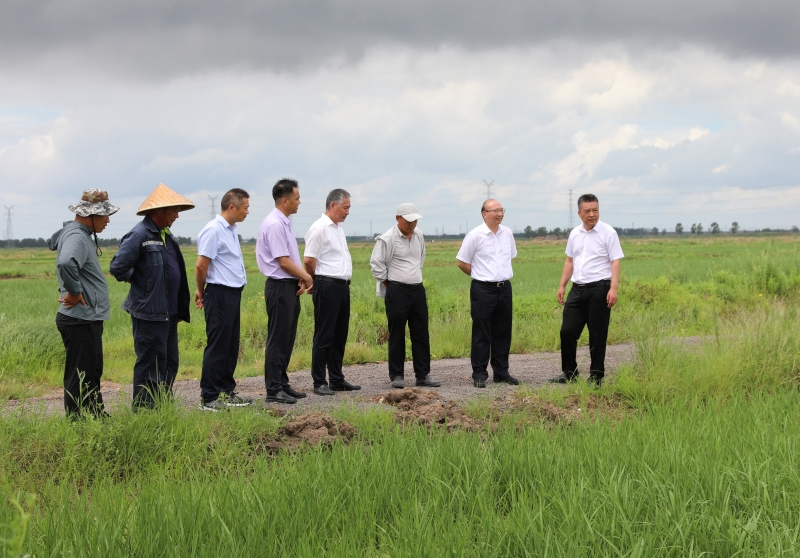 丁銳一行還到大新農(nóng)場實(shí)地查看新品種水稻種植情況。(仲偉彬)