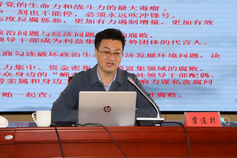 本次廉政教育報告會邀請了市紀委監委第八監督檢查室主任霍連升同志專題授課,霍連升主任在題為《以案明紀、遵規守法,做國有企業的廉潔從業表率》的報告中,圍繞分析當前形勢明確反腐任務剖析典型案例,汲取深刻教訓;增強法紀觀念嚴守廉潔底線等三方面進行授課,深入闡述了習近平總書記關于黨風廉政建設和反腐敗斗爭重要論述,重點解讀了新時代反腐敗斗爭形勢,結合近年來本地查處的違法違紀典型案件,為全體黨員干部上了一堂主題鮮明、內容豐富、成效顯著的黨風廉政教育課。