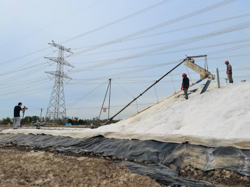 連云港日報社到海州灣公司制鹽現場實地采訪