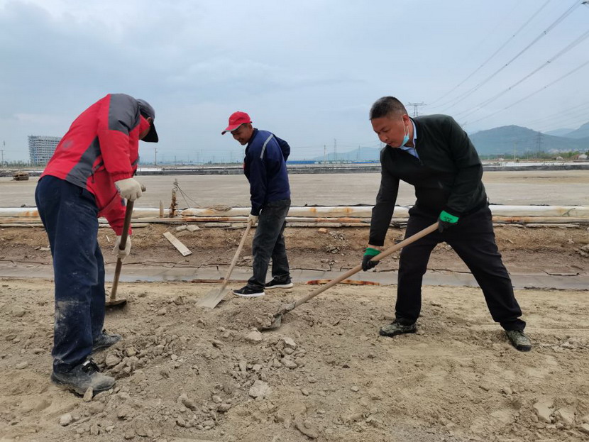 58日至10日,公司全體管理人員下至昌圩班組作業現場,與一線工人共同“作戰”——清理鹽池里沉淀的硫酸鈣固化物。硫酸鈣固化物俗稱鹽繭,形成的主要原因是鹵水中的硫酸鈣溶解度低,在特定的環境下大量形成,沉淀在鹽池板表層,若不清理,將嚴重影響鹽質顏色。在清理過程中,黨員干部帶頭干、往前沖,一锨一锨地將鹽繭鏟起,堆積并裝車卸貨。公司秉承降本增效工作理念,將清理出的鹽繭廢物鋪墊在鹽灘壟道上,提高了路面硬度方便職工日常作業。