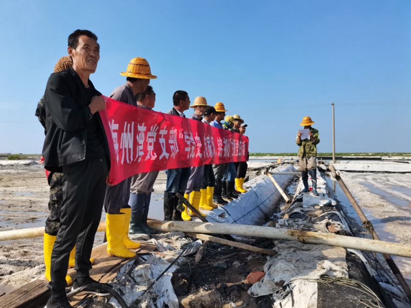 為進(jìn)一步深化黨史學(xué)習(xí)教育,加強(qiáng)黨員和領(lǐng)導(dǎo)干部的家風(fēng)建設(shè),9月16日下午,海州灣黨支部結(jié)合解放戰(zhàn)爭(zhēng)史的學(xué)習(xí),在大八組扒鹽現(xiàn)場(chǎng)開展“學(xué)黨史、傳家風(fēng)、銘初心”主題黨日活動(dòng)團(tuán)結(jié)引領(lǐng)廣大職工傳承紅色家風(fēng),賡續(xù)精神血脈,堅(jiān)定不移聽(tīng)黨話、跟黨走,銘記黨史黨恩,弘揚(yáng)家國(guó)情懷。