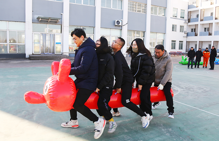 經過激烈角逐,最終盛達市政分公司代表隊,獲得“男女混合毛毛蟲接力比賽”第一名好成績 。