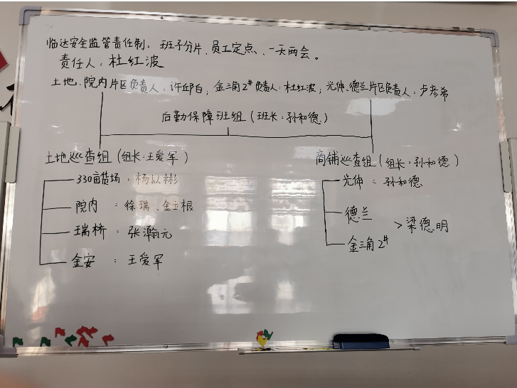 全面壓實安全管理責任。建立全員安全責任清單,實施“重大安全風險公告”“崗前一分鐘培訓”等措施,成立土地、商鋪兩個安全巡檢小組,形成“每日目標上墻,每日隱患匯總,每日強化整改”工作體系,切實提升員工的安全素質和管控能力。