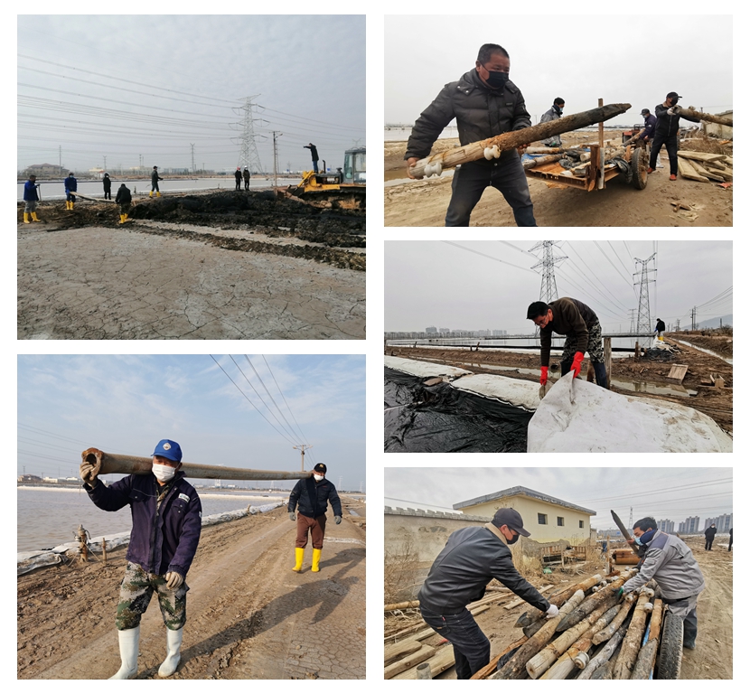 疫情來襲和征地影響給大浦工區2020年的原鹽生產任務帶來了的重大壓力,面對嚴峻的形勢,大浦工區迅速調整生產機制,制定應對措施,將受征地影響的14、15班調整至先鋒東灘生產鈣鹽;將兩塊閑置地塊進行改造為春灌塑池,進一步擴大結晶面積;鋪設管道將已征塑池底碴鹽泡碴制鹵輸送到二組,對駁運完鹽的廩基沖化粉鹽制鹵,為原鹽生產降單耗打好基礎。全工區上下呈現出“大鬧生產”的良好氛圍,大浦人用奮斗唱響了最美的“鹽之歌”。